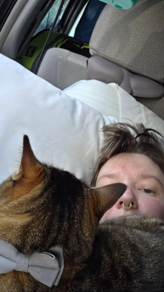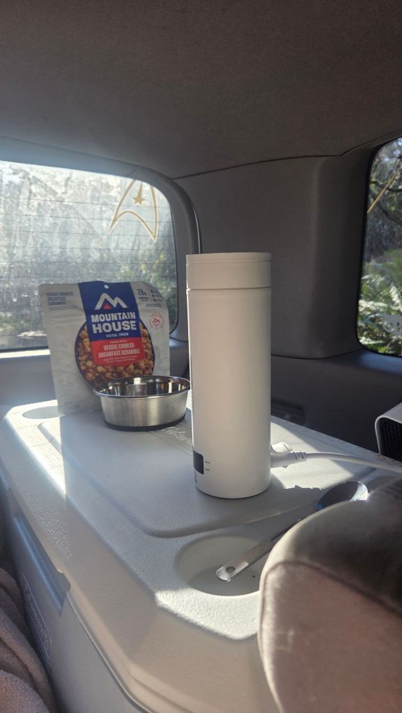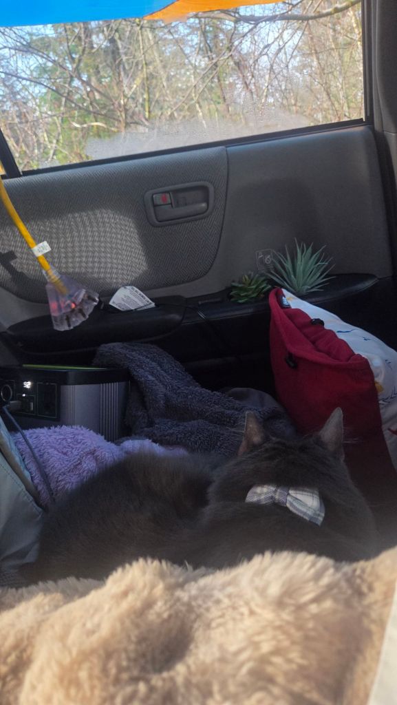 Worked on this post, then I finished making most of the reflectix window covers for Majel (just have the back window left to do) and man, it really makes a difference in the heat retention. Leeloo slept on my chest all night, but it definitely wasn’t to keep warm. I even had to turn the heater down, because it was getting a little too roasty toasty!