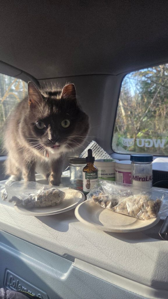 He’s sitting by the bags of raw food that I’m quick-thawing in front of the space heater XDChecking on the state of things while he waits for breakfast