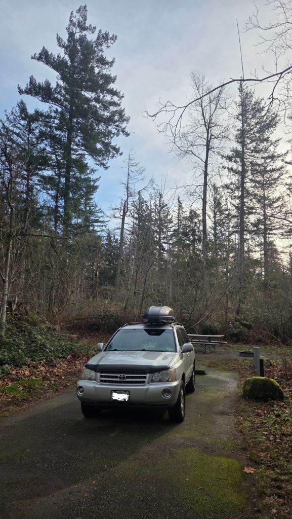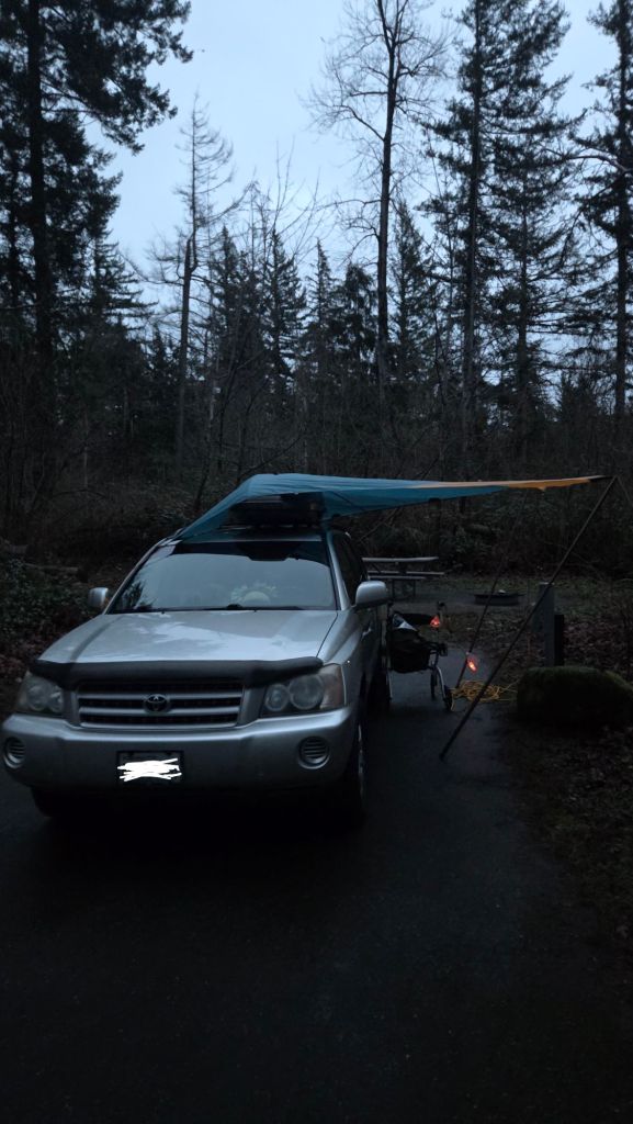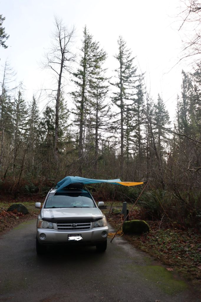 We weren’t able to go camping at all in December due to the TWO atmospheric rivers that were causing flooding. We technically could have gone earlier in the month, but I had work, so no dice. Poor Leeloo didn’t understand why I went from telling her we were going to camping to telling her she’d have to wait until January. She was sadly pushing her “CAMPING” speech button a lot. Thankfully, we were able to go camping in January with no issues!