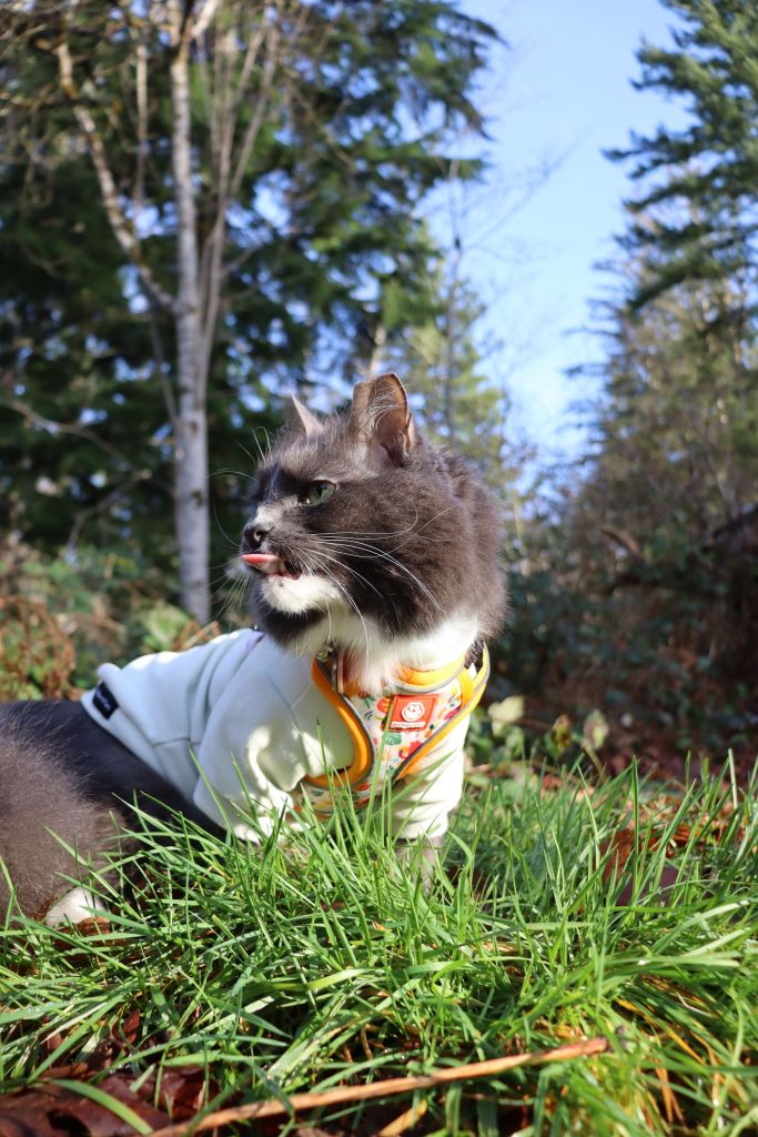 Mr Worldwide? Never heard of him. This Mr Whisker WednesdayBoth kids LOVE sword ferns.Contrary to the lip licking, he is not eating it.Ugh, he’s so adorable. I love all his funny grumpy-looking faces (esp because he is 0% grumpy.)“Oh hey, there’s edibles out here!”I clearly need one of those ultra fancy cameras that has cat eye auto-focus *cries*Horizontal blep maneuver.He makes some of the funniest faces XDRocking our new favourite harness from petgrove. It’s SOOO comfortable, and they’re freaking adorable.
