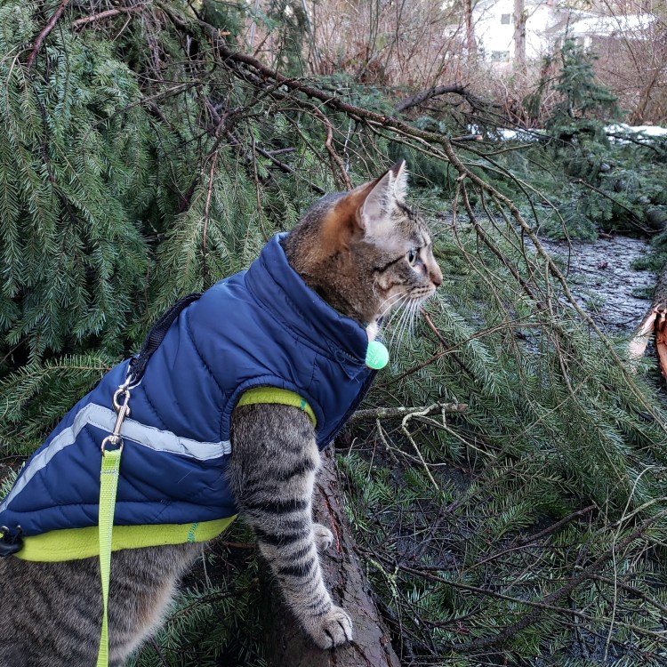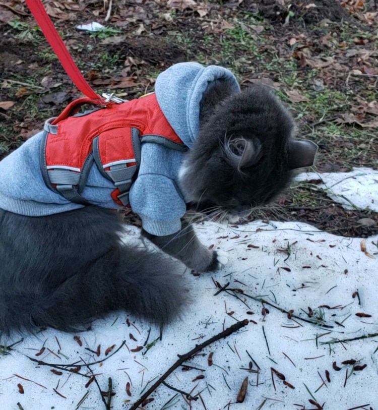 Leeloo never asks to be held (though she loves snuggles at bedtime!), and doesn’t tolerate it for long, but her little feet got cold in the snow and she jumped right into my lap!