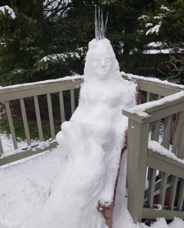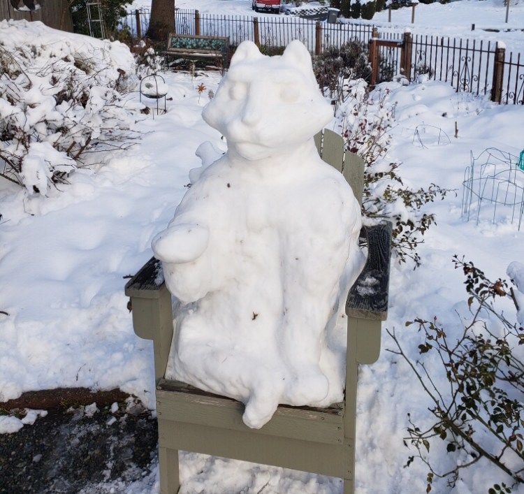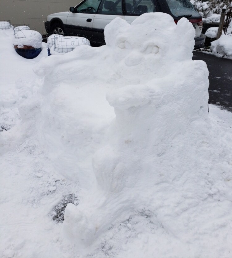 There were so many branches on the ground! The snow was much heavier up at the kids’ gramma’s house. Their gramma used the snow that she shoveled from the sidewalk and driveway to make really cool snow sculptures, but no one had shoveled the park, especially not in the way back away from the cars.