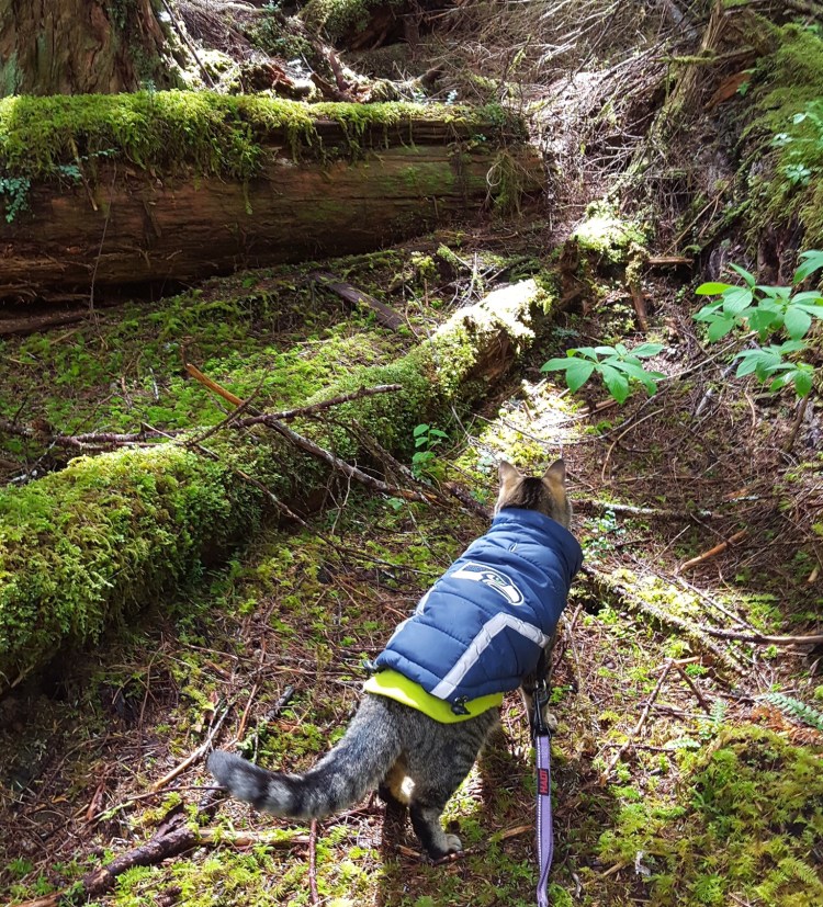 The kids hung out in their Happy Habitat while I got our breakfasts ready (their usual Small Batch raw, and my leftover Taco Bell bean and cheese burrito). Then it was adventure time!