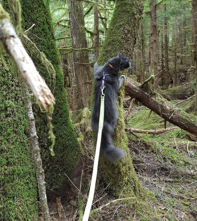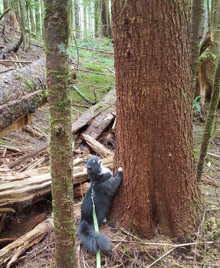 After she got over her bouts of gratitude rolling, Leeloo of course tried to climb every tree ever. Thankfully, she has a really good sense for what I can fit around and under. Sieh needs a little practice in that department.
