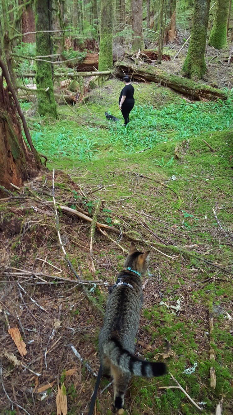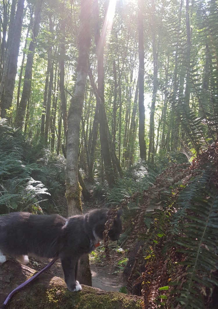 The kids hung out in their Happy Habitat while I got our breakfasts ready (their usual Small Batch raw, and my leftover Taco Bell bean and cheese burrito). Then it was adventure time!