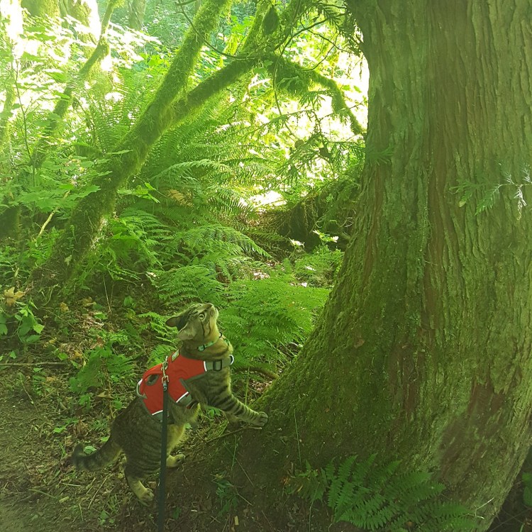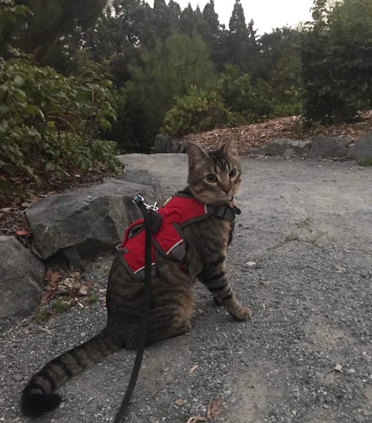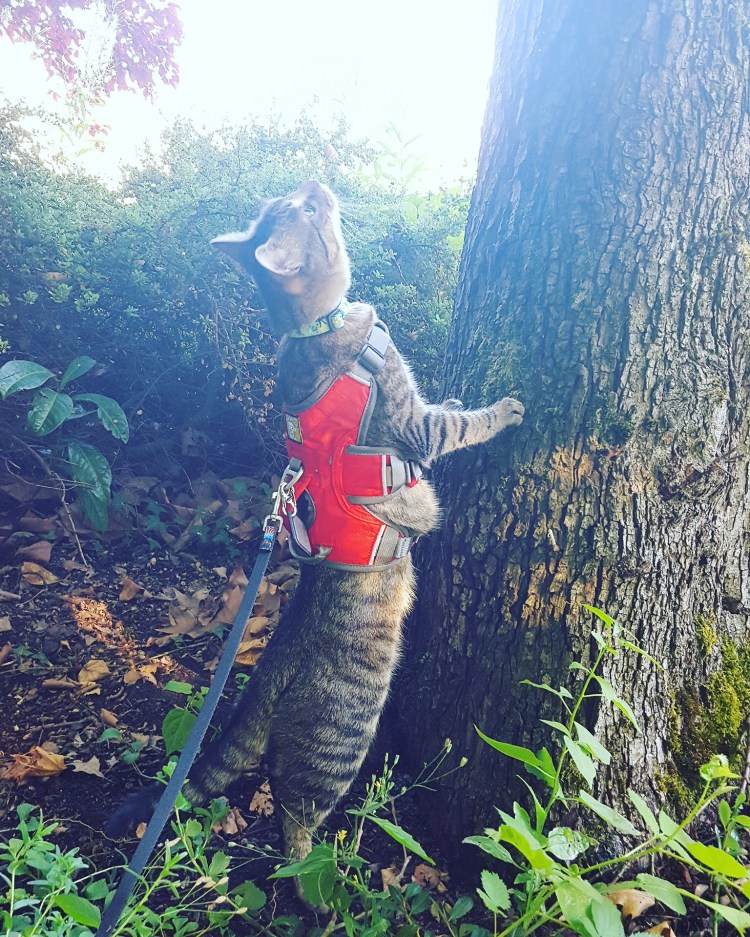 This was my first day of having Sieh on leash, and I was initially a little worried that he’d be too timid to want to do much. Boy was I wrong! He sauntered all over, and even discovered that trees can be scratching posts! He was so confident!